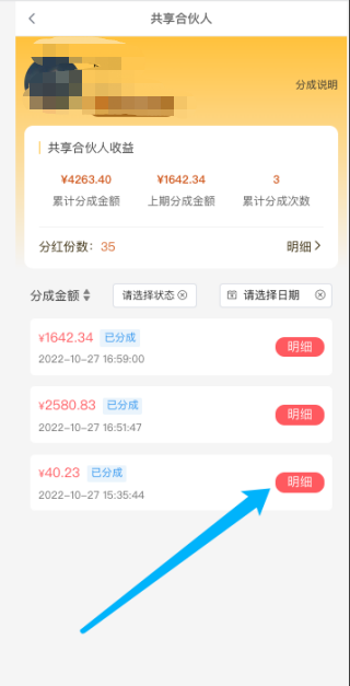 5、上周期分成金额:会员最新一期分成金额
