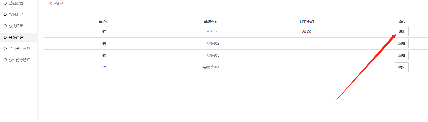 封顶金额:对应等级的会员(单个会员)可以获得的最多分红金额。为0为空则是不封顶
