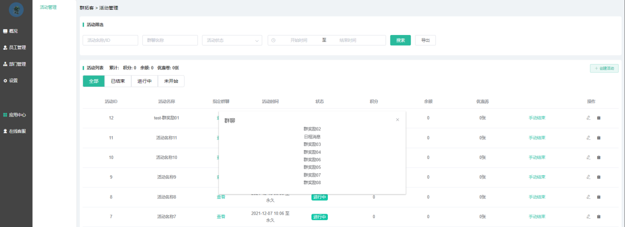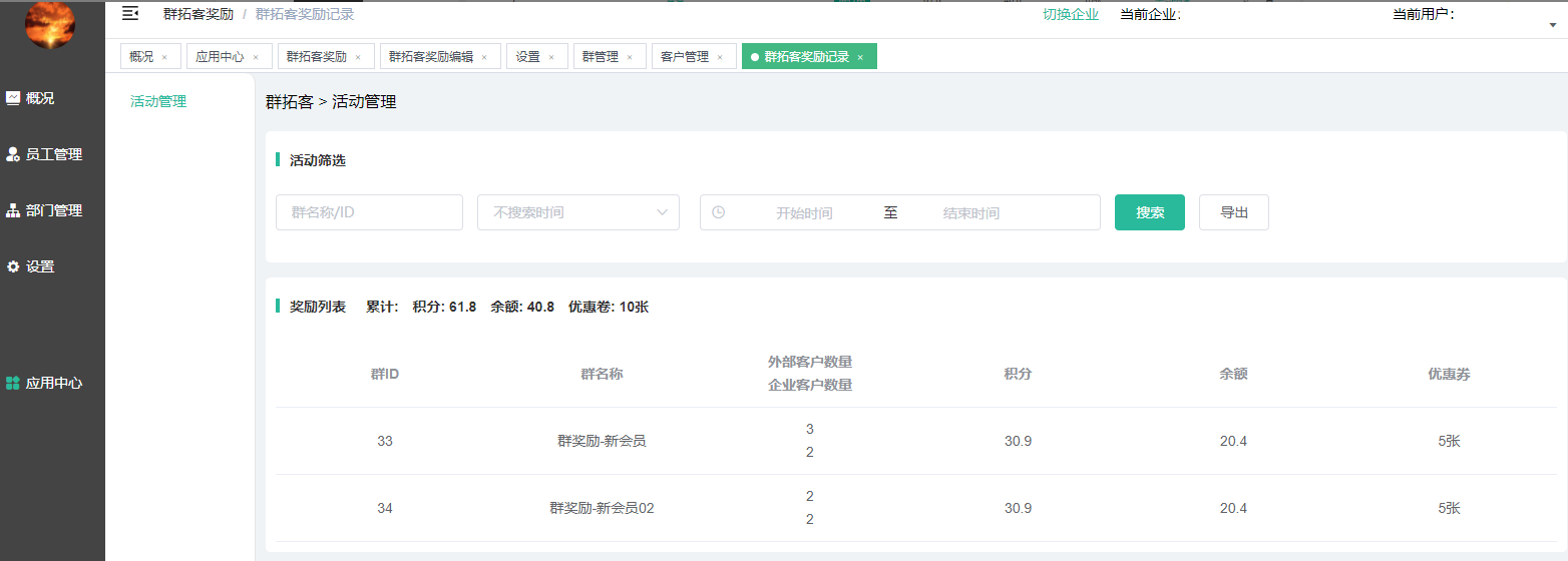 2、登录企业管理平台--应用中心--群拓客奖励—活动管理