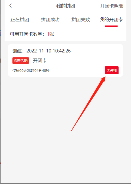 2) 开团卡数量:该开团卡该会员的可使用数量
