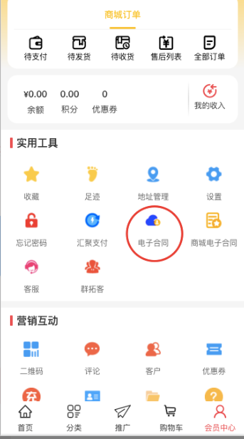 2、员工账号如果没有显示合同模版,则表示法人没有授权员工模版,需要登录电脑端操作授权;