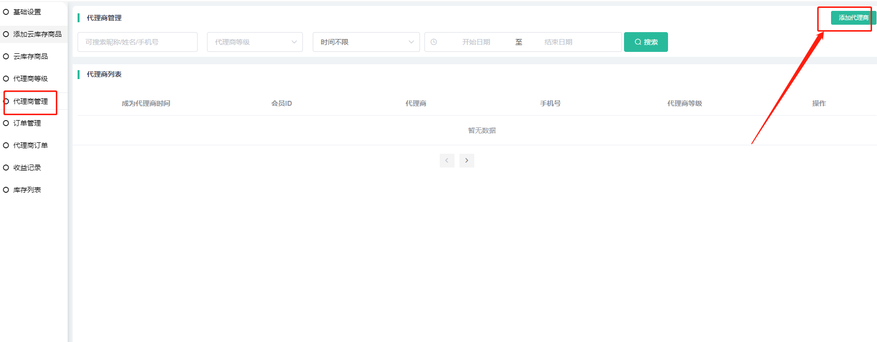 后台可以添加会员成为代理商
