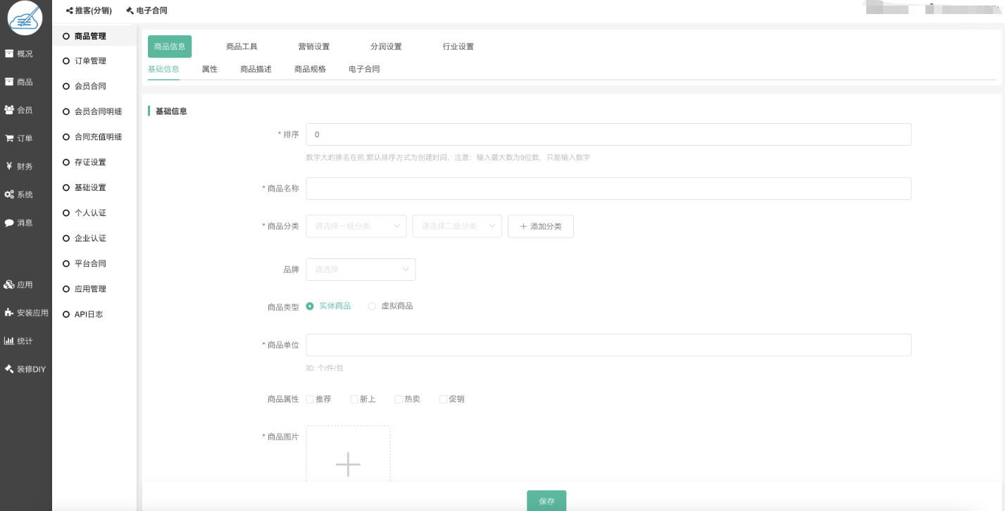 注意:如果您只是自用,不需要销售电子合同套餐,可以不用发布电子合同商品,只要在会员合同中给企业法人会员直接手动充值合同即可。